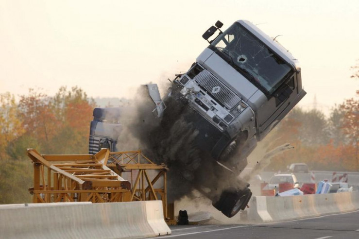 Die Kommissare versuchen die Gangster, die mit einer Zugmaschine auf der Flucht sind, ebenfalls mit einem LKW zu stoppen. Dabei hebt der LKW mit den Gangsters ab und kracht auf die Gegenfahrbahn...