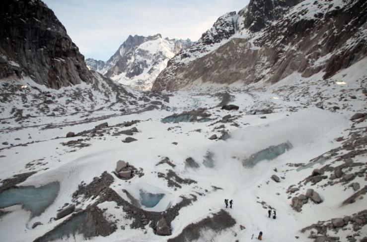 Im Gebiet des Mont-Blanc verschmelzen Wolken- und Eismeere. Schwindelnde Höhen und schroffe Felsen prägen die Landschaft.