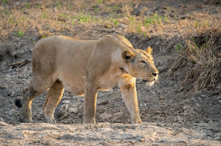 Eine trächtige Asiatische Löwin auf der Suche nach Beute