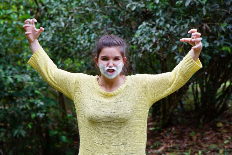 Anna riecht sie lange, bevor sie sie zu Gesicht bekommt: Im Regenwald von Ecuador lernt die Tierreporterin Pekaris kennen. Die sind mit unseren Schweinen zwar verwandt, gehören aber zur Familie der Nabelschweine. Den Namen haben sie wegen einer Drüse am Hinterteil, die wie ein Bauchnabel aussieht. Aus der, so erfährt Anna, kommt auch der starke Geruch. Bild: Anna als wütendes Weißbartpekari. Halsbandpekari und Weißbartpekari leben im Amazonas-Urwald. Weiteres Bildmaterial finden Sie unter www.br-foto.de.