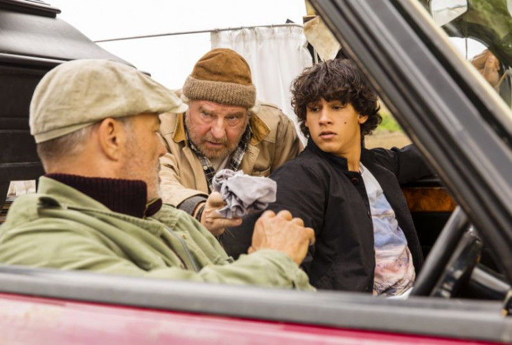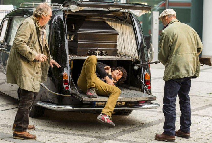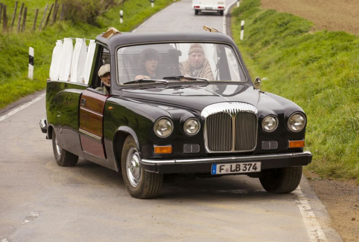 Auf ihrer rasanten Flucht vor der Polizei geraten Horst (Heiner Lauterbach, li.) Elyas (Emilio Sakraya Moutaoukkil, Mitte) und Johann (Friedrich von Thun, re.) in ihrem Leichenwagen schon mal ins Schleudern.