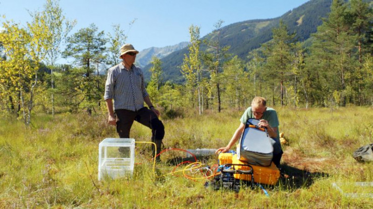 Moorexperte Stephan Glatzel (Universität Wien) mit seinem Kollegen Andreas Maier (Universität Wien) im steirischen Pürgschachen Moor.