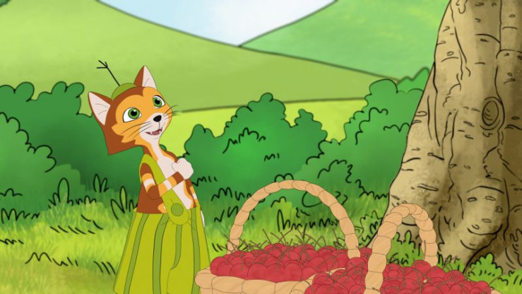 Pettersson und Findus haben Kirschen gepflückt. Sie freuen sich über eine tolle Ausbeute von drei randvollen Eimern. Weil Pettersson kurz zu Beda Anderson muss, bewacht Findus die Ernte.