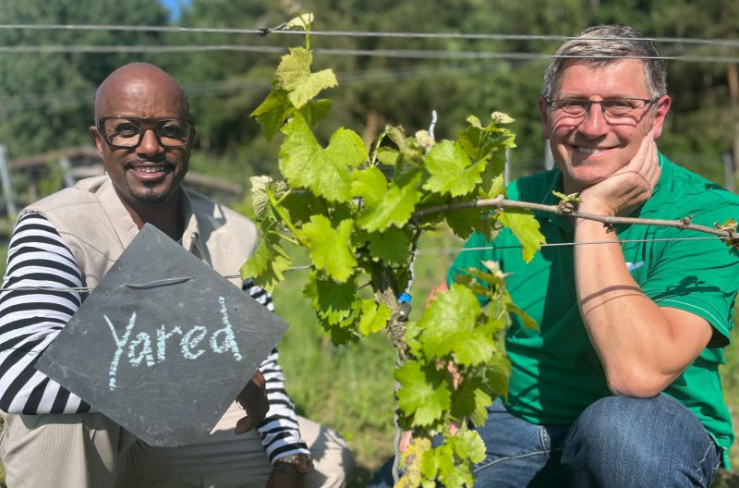 Yared Dibaba (l.) mit Weinbauer Carsten Kaßburg (r.).