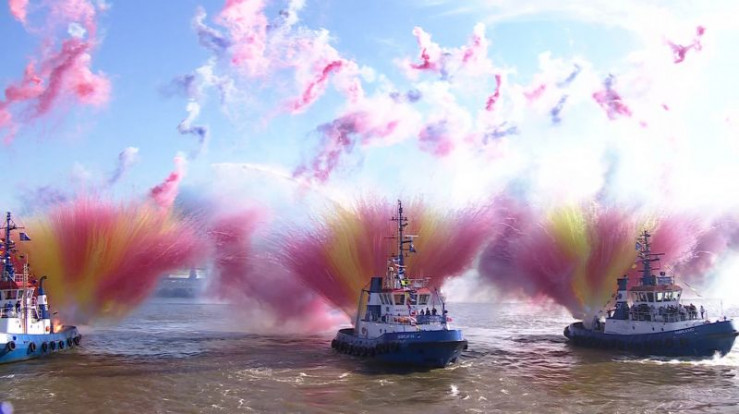 Traditionelles Schlepperballett beim Hafengeburtstag.