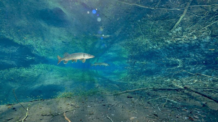 Im Oberrheintal entspringen aus Quellen mitten in der Ebene kleine Flüsschen voller Grundwasser. Diese Donnerloch genannten Quellen sind Lebensraum großer Hechte.