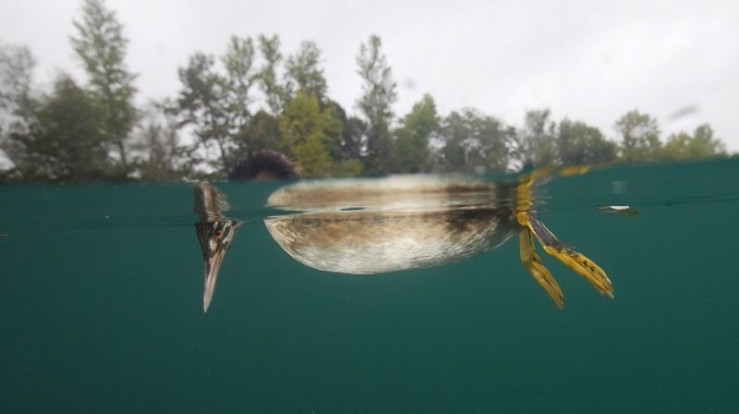 Haubentaucher sind geschickte Unterwasserjäger. In aufgegebenen Baggerseen gehen sie auf Jagd nach Fischen.