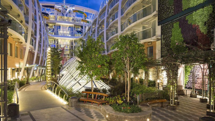 Die Harmony Of The Seas ist im wahrsten Sinne des Wortes eine schwimmende Stadt mit Geschäften, Boulevards, Kneipen und Restaurants. Darüber hinaus gibt es eine Freiluftzone, genannt "Central Park", in der zwölftausend tropische Pflanzen gedeihen.