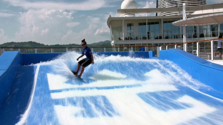 Die Harmony Of The Seas bietet verschiedene Attraktionen, unter anderem auch Wellenreiter - 70 Meter über dem Meer.