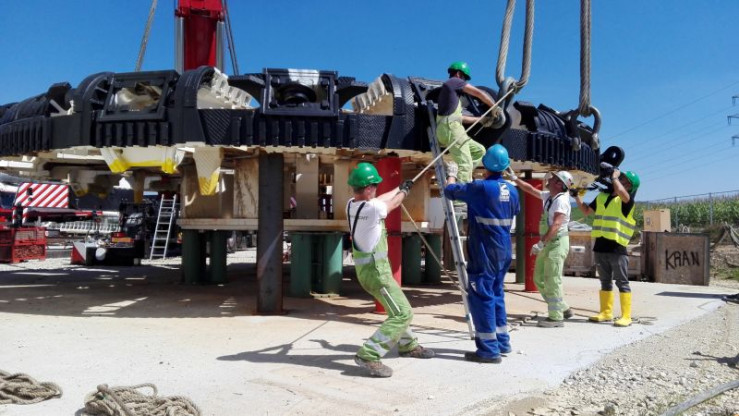 Das 200 Tonnen schwere Schneidrad muss gründlich für die Verladung gesichert werden.