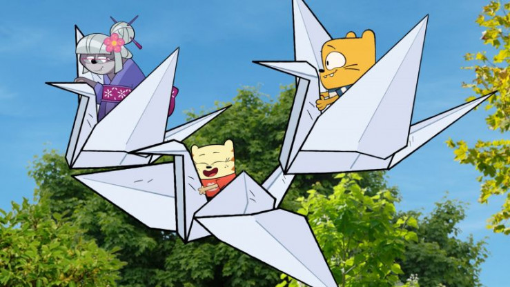 Während sich Ollie und Stanley dem besinnlichen Falten von Origami-Figuren widmen, ist Moon pausenlos mit ihrem Videospiel beschäftigt.