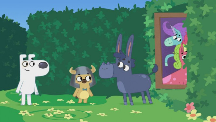 Dogs und Pucks Begeisterung für Abenteuer führt sie in ein magisches Land, in dem stets die Sonne scheint und Pferde fliegen können. Dort stehen sie einer Eselin bei, die unbedingt ein Einhorn sein will und decken die Vorgänge hinter der glitzernden Fassade auf.