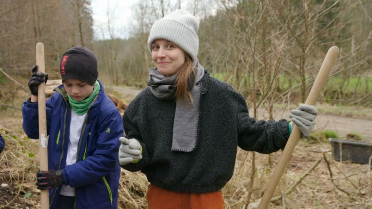 Marina hilft einer Schüler AG Löcher für Gelbbauchunken zu graben. © BR/megaherz GmbH/Amelie Cran - Honorarfreie Verwendung gemäß AGB im redaktionellen Zusammenhang mit genannter Sendung bei Nennung "Bild: BR/megaherz GmbH/Amelie Cran" einschließlich Social Media Einschließlich Social Media© BR/megaherz GmbH/Amelie Cran - Honorarfreie Verwendung gemäß AGB im redaktionellen Zusammenhang mit genannter Sendung bei Nennung "Bild: BR/megaherz GmbH/Amelie Cran" einschließlich Social Media Einschließlich Social Media