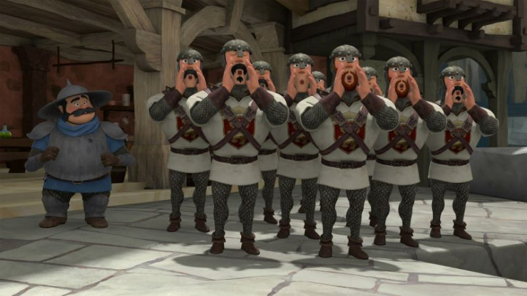Die Soldaten im Schloss sind stocksauer, weil ihnen ihr Blaubeerkuchen geklaut wurde. Sie verdächtigen Prinz John und ziehen entschlossen los, um sich einen neuen Herrscher zu suchen.