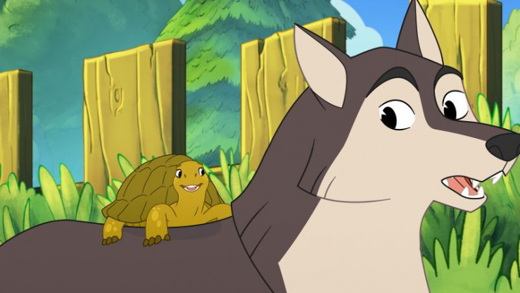 Der sieht ja gar nicht so böse aus? Schildkröte Törtel (l.) lernt den vermeintlich bösen Wolf Boris (r.) kennen.
