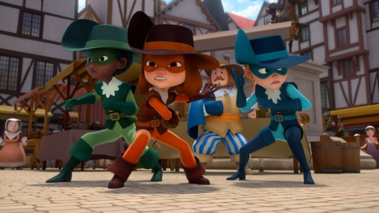 Frei nach Alexandre Dumas Klassiker werden die Abenteuer der bekannten Helden neu, humorvoll und mit weiblichen Charakteren erzählt. "Eine für alle, alle für eine" ist das Motto. Gemeinsam mit ihren Pferden nehmen sie es auch mit Kardinal Richelieu und Milady auf.