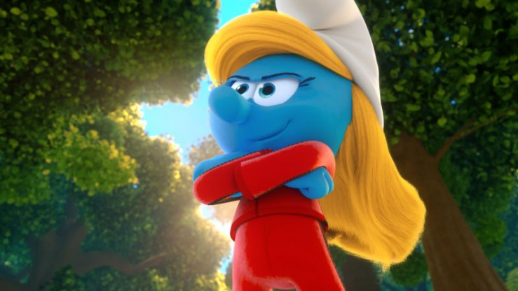Schlumpfine zeugt den Schlümpfen einen Kung-Fu Tritt.