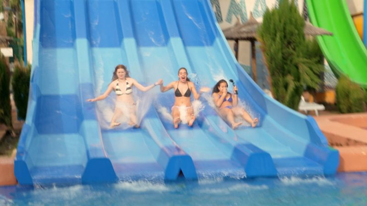Für "Die Mixed-WG" geht es auf einen Campingplatz mit riesiger Poolanlage. Wer die Rutsch-Challenge verliert, muss die Zelte aufbauen. © ZDF/E+U TV - Honorarfreie Verwendung gemäß AGB im redaktionellen Zusammenhang mit genannter Sendung bei Nennung "Bild: ZDF/E+U TV" einschließlich Social Media Einschließlich Social Media© ZDF/E+U TV - Honorarfreie Verwendung gemäß AGB im redaktionellen Zusammenhang mit genannter Sendung bei Nennung "Bild: ZDF/E+U TV" einschließlich Social Media Einschließlich Social Media