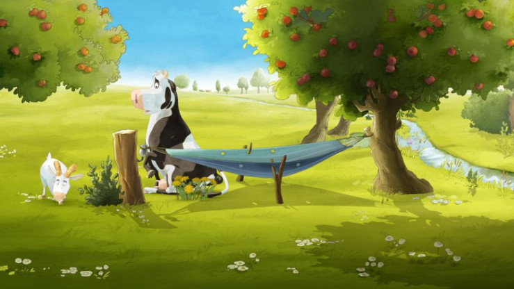 Die Kuh Lieselotte würde gerne Löwenzahn essen, aber die Ziege schnappt ihr jede Blume vor der Nase weg. Was soll Lieselotte machen, wenn die Ziege einen Bärenhunger hat? Als sie nach vielen Ablenkungsmanövern endlich anfangen könnte ihren Löwenzahn zu essen, hat der Postbote auf diesem Platz sein Zelt aufgebaut. Und zu allem Überfluss verfängt sich Lieselotte noch in den Seilen des Zeltes. Nun ist eine verfressene Ziege sehr nützlich.