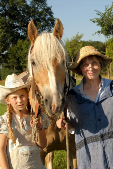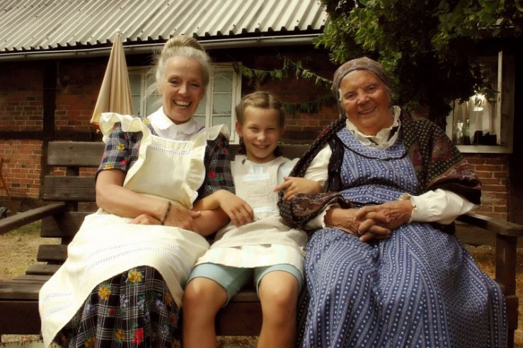 Emma (Zoe Charlotte Mannhardt) sitzt zwischen den Freundinnen ihrer Oma: Henriette (Heidi Mahler, li.) und Martha (Heidi Kabel, re.). Hier auf dem Land fühlt Emma sich wohl.