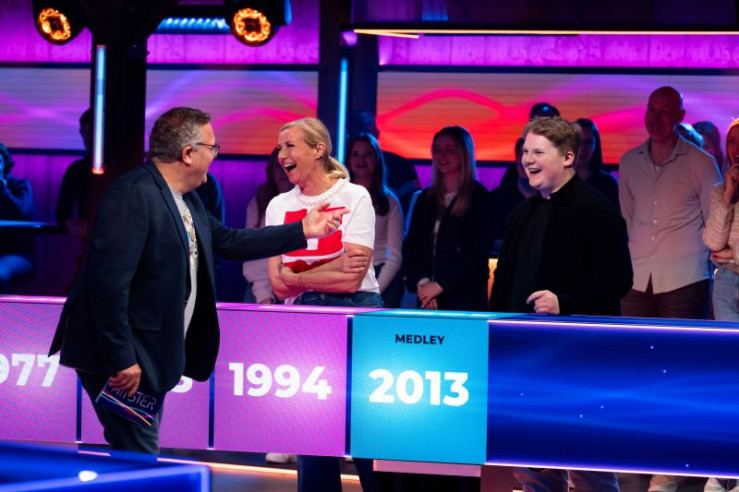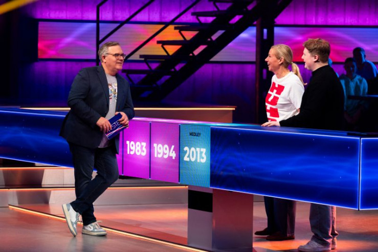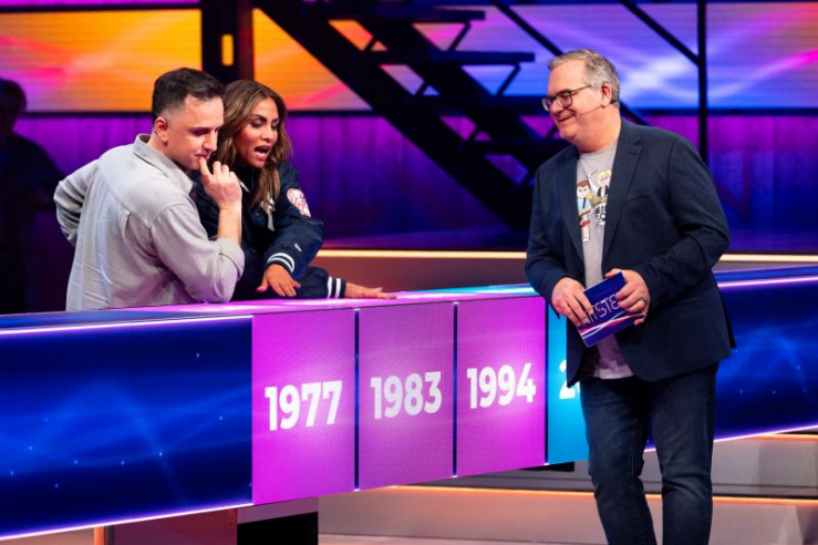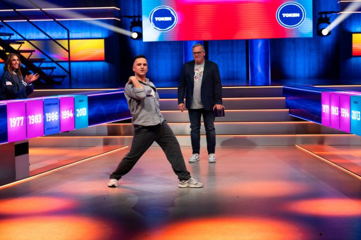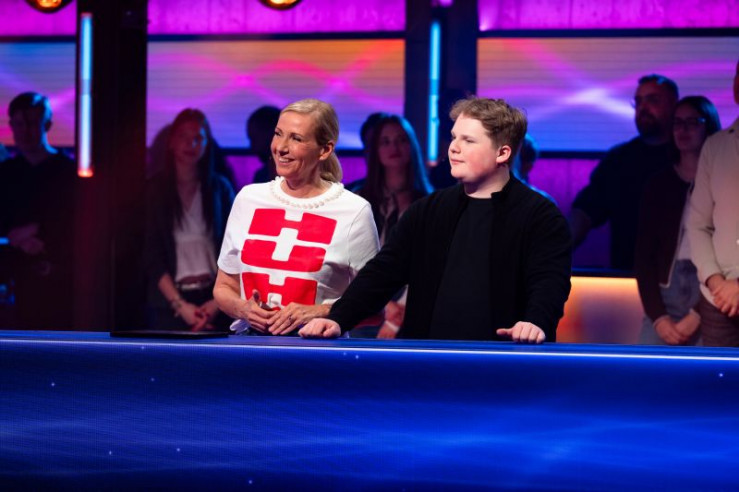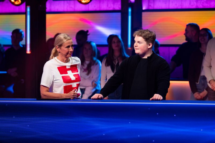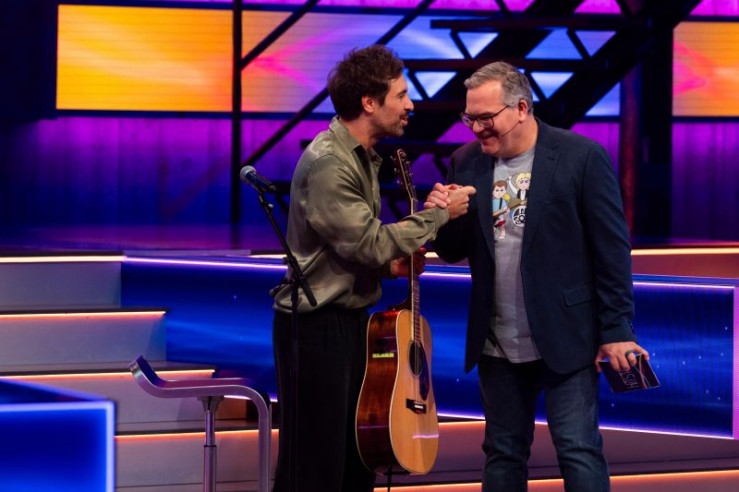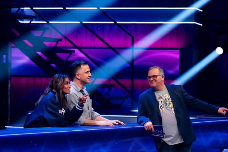 V.l.: Angelo Kelly, Gabriel Kelly, Moderator Elton, Evelyn Burdecki, Ingolf Lück