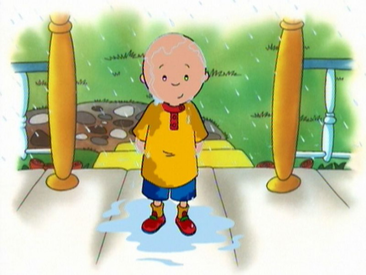 Caillou hat den ganzen Tag im Regen gespielt.