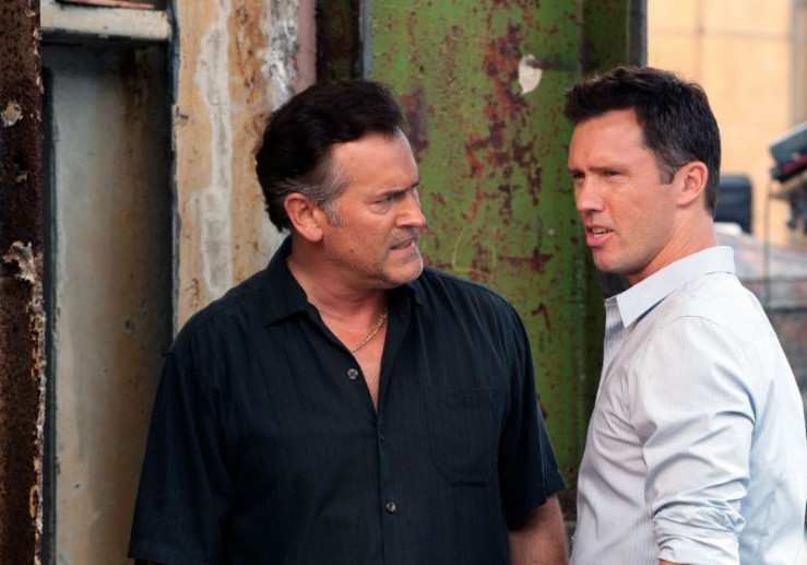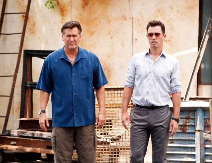 Sam Axe (Bruce Campbell, l.) und Michael Westen (Jeffrey Donovan) sind immer noch auf der Suche nach einem Bombenbastler, der Michael töten wollte... +++ Die Verwendung des sendungsbezogenen Materials ist nur mit dem Hinweis und Verlinkung auf RTL+ gestattet. +++