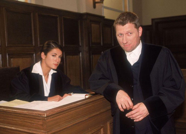 Die Staatsanwälte Sturm (Mariella Ahrens) und Brunner (Michael Fitz) verhören im Gerichtssaal gleich drei Frauen, die in Verdacht stehen Jochen Reitz ermordet zu haben.