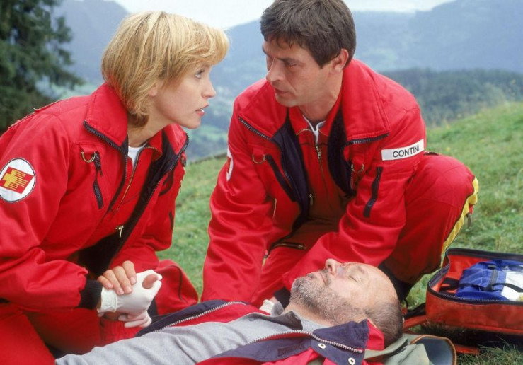 Hans Zimmer (Peter Mazzuchelli) wurde von einer kleinen Privatmaschine im Tiefflug so lange gejagt, bis er einen Abhang hinuntergestürzt ist. Verletzt wartete er auf die Rettungsärzte. Contini (Tom Mikulla) und Dr. Thaler (Roswitha Meyer) versorgen ihn für den Flug in die Klinik. +++ Die Verwendung des sendungsbezogenen Materials ist nur mit dem Hinweis und Verlinkung auf RTL+ gestattet. +++