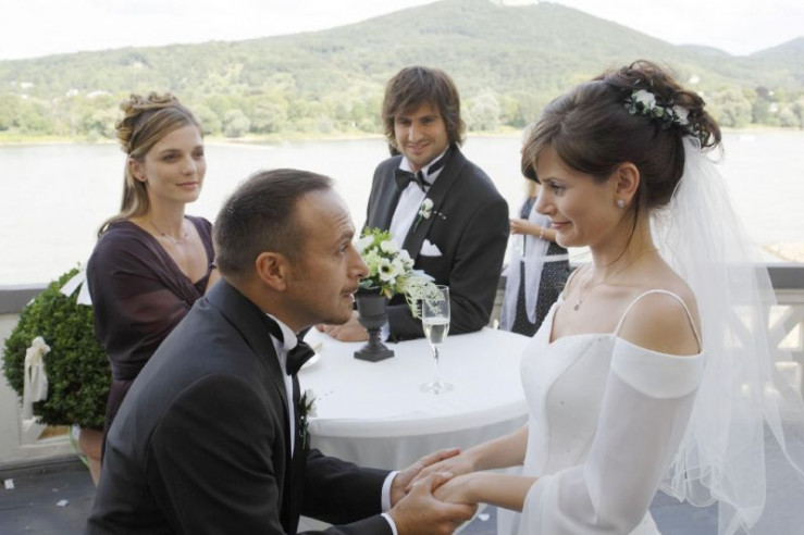 Semir (Erdogan Atalalay, 2.v.l.) lernt Bens (Tom Beck) Schwester, die Braut Julia (Joyce Ilg, r.) kennen. Auch Susanne (Daniela Wutte) ist zu der Hochzeit eingeladen.