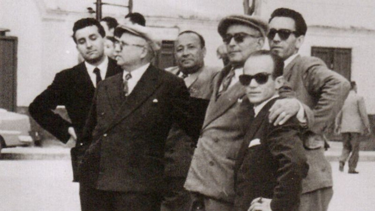 Peppino kämpft gegen die Mafia - obwohl seine eigene Familie in deren Umfeld involviert ist. Das Bild zeigt seinen Vater Luigi (3.v.l.) mit mehreren Mafiagrößen Siziliens:(v.l.): Leonardo Pandolfo, Cesare Manzella, Tommasco Impastato, Sarino Badalamenti und schließlich auch Peppinos Mörder Gaetano Badalamenti. +++ Die Verwendung des sendungsbezogenen Materials ist nur mit dem Hinweis und Verlinkung auf RTL+ gestattet. +++