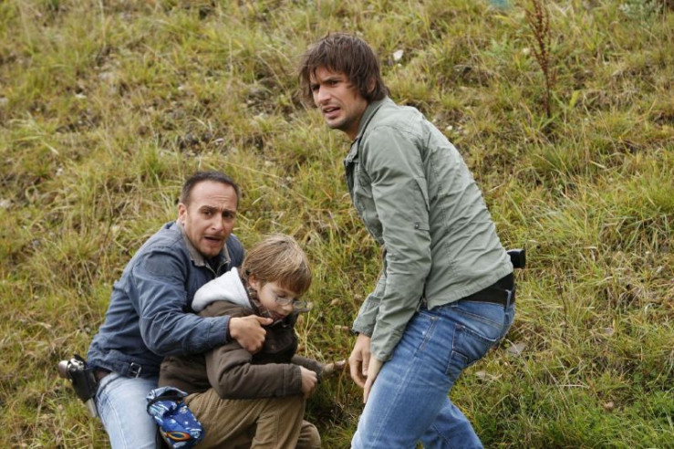 Ben (Tom Beck, r.) und Semir (Erdogan Atalay, l.) konnten in letzter Sekunde den kleinen Felix (Mateo Wansing Lorrio) retten, bevor er von den heranrasenden Autos überfahren wird...