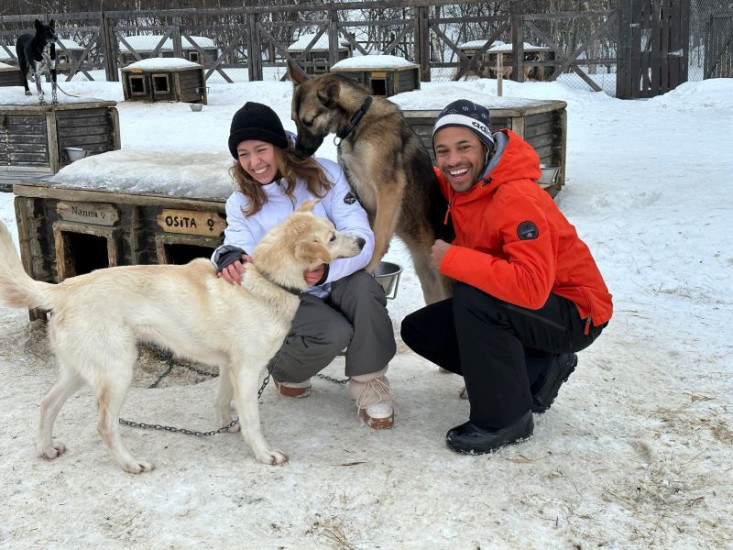 Für das deutsch-niederländische Paar Aukje und Dominik ist der Aufenthalt auf dem Schiff eine Herausforderung, denn ihre Kinder Livia, fünf, und Dax, zwei, sind noch recht jung: "Es ist halt kein schwimmender Kinderklub, sondern ein Transportschiff. Die müssen sich natürlich an den Fahrplan halten - auch, wenn es an Land noch viel zu sehen gäbe für die Kinder", so Aukje. Die Ausflüge in den Schnee und Rentierfütterung gefallen aber allen vieren gut. Und als Mutter und Tochter unerwartet Nordlichter am Himmel entdecken, ist der Tag perfekt.