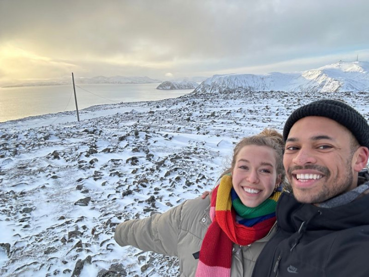 Selfie am Polarkreis: Dominic hält diesen besonderen Moment für sich und seine Familie fest.