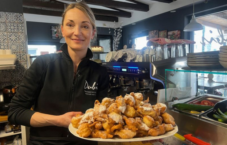 Gastronomin Dubravka "Dubi" Granic mit Fritule (kroatische Vanillekrapfen).