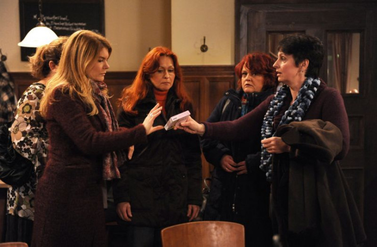 Mit einem gemeinsamen Pressetermin will Moni Frieden stiften zwischen Schattenhofer und Vroni.