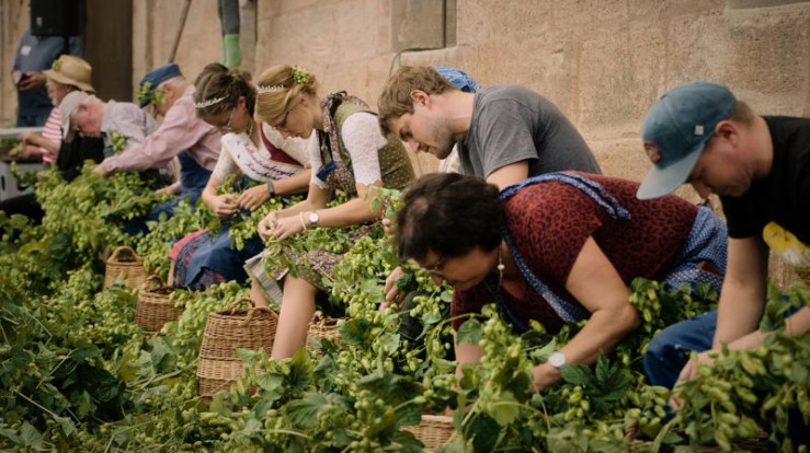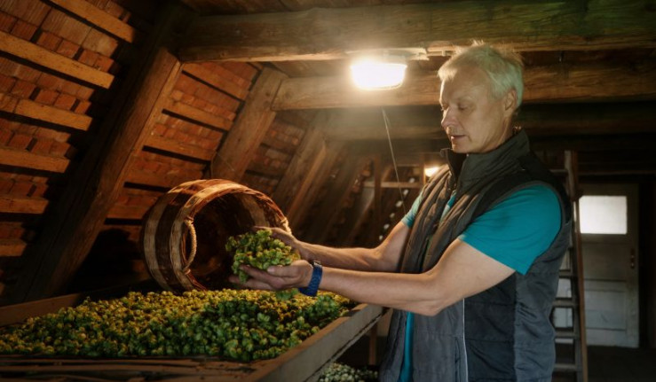 Toni Ermer führt zusammen mit seiner Frau Ingrid und Sohn Florian den Ermerhof im Nebenerwerb, schon seit 200 Jahren baut die Familie Hopfen an. Ihr Haus stammt aus dem 19. Jahrhundert und ist 17 Meter hoch - ein typisches Spalter Hopfenhaus. Die imposanten Fachwerkhäuser waren Ausdruck von Reichtum und Wohlstand, dienten aber auch einem praktischen Zweck: Der in fünf Böden unterteilte Dachstuhl wurde dafür genutzt, die grünen Dolden zu trocknen.