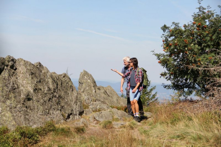 Es war einer der heißesten Tage im August, als sich Werner Schmidbauer mit der Kabarettistin Eva Karl Faltermeier auf den Weg hinauf zum 1.293 Meter hohen Gipfel des Großen Osser bei Lam im Bayerischen Wald machte. Der Osser ist der Lieblingsberg der gebürtigen Oberpfälzerin, die als Kind mit ihren Geschwistern in den Sommerferien oft hier war. Jetzt war es eine Rückkehr auf den Osser nach fast 30 Jahren.
