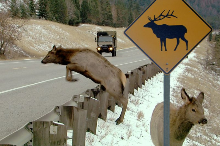 Ein röhrender Wapiti-Hirsch mit seinem Harem blockiert einen Highway - Ernst Arendt und Hans Schweiger nehmen die Zuschauerinnen und Zuschauer mit auf eine ungewöhnliche Reise durch Nordamerika. Sie zeigen, wo man wegen Hirschen warten muss, wo Bergschafe schwere Highway Trucks ausbremsen, aber auch, wo die Tiere ganz artig über den Zebrastreifen gehen. Amüsant, die Hirschbrunft mitten in einem Touristenort: Liebestolle Hirsche, nervöse Ranger und neugierige Schaulustige mischen sich zu einem bunten Chaos. Die Tierfilmer beobachten auch, wie ein Bär sich neben der Straße den Winterspeck anfrisst oder wie ein Murmeltier Material für seinen Winterschlaf sammelt.