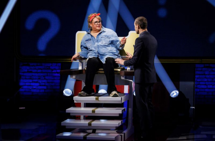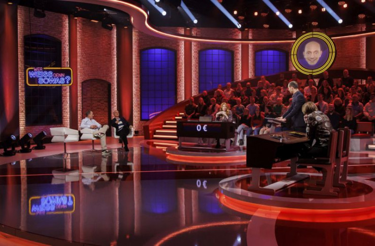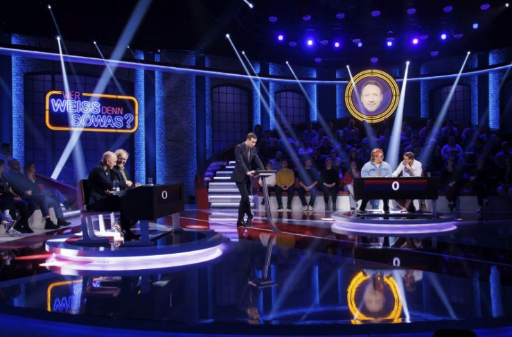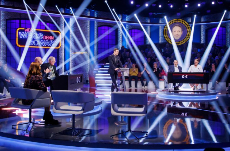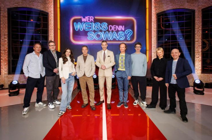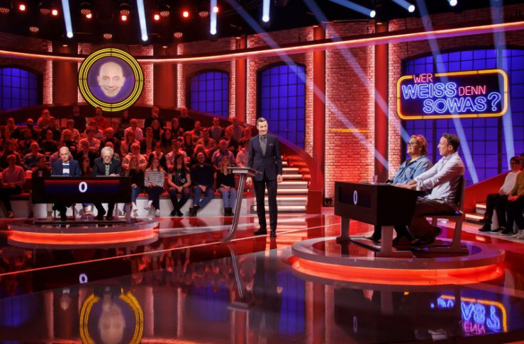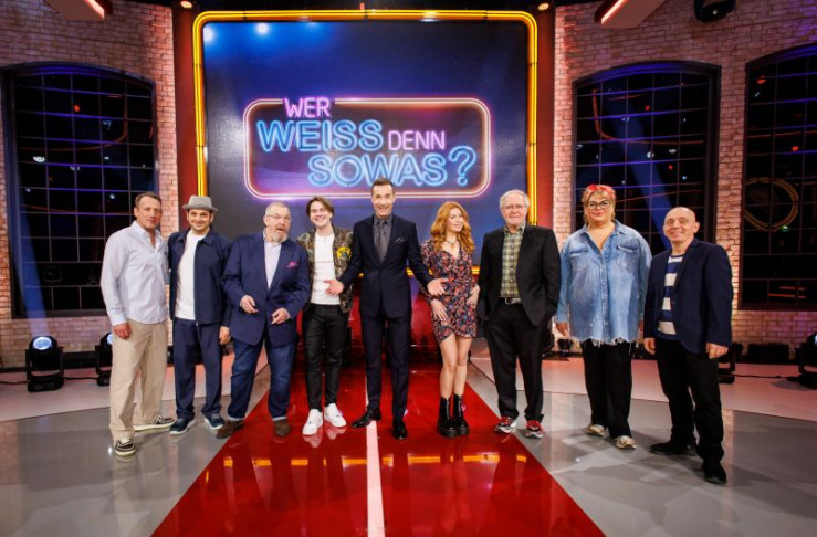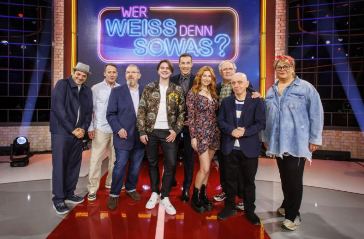 In diesem XXL begrüßen Moderator Kai Pflaume (M.) und seine Rateteam-Kapitäne Bernhard Hoëcker (r.) und Wotan Wilke Möhring (l.) als prominente Gäste in der ersten Runde die Fernsehmoderatorin und Schauspielerin Palina Rojinski (4.v.r.) und den Schweizer Sänger und Musiker Vincent Gross (4.v.l.). In der zweiten Runde den österreichischer Schauspieler und Moderator Harald Krassnitzer (3.v.r.) und den Schauspieler Dietmar Bär (3.v.l.), sowie in der dritten Runde die Stand-up-Komikerin Ilka Bessin (2.v.r.) und den Komiker und Fernsehmoderator Kaya Yanar (2.v.l.)