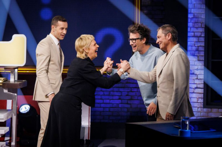 Rateteam-Kapitäne Bernhard Hoëcker mit Palina Rojinski und Kai Pflaume