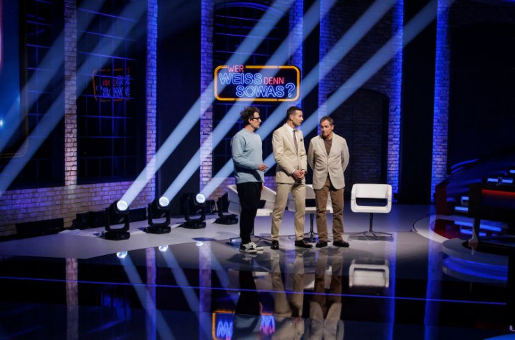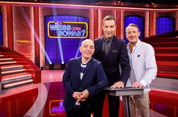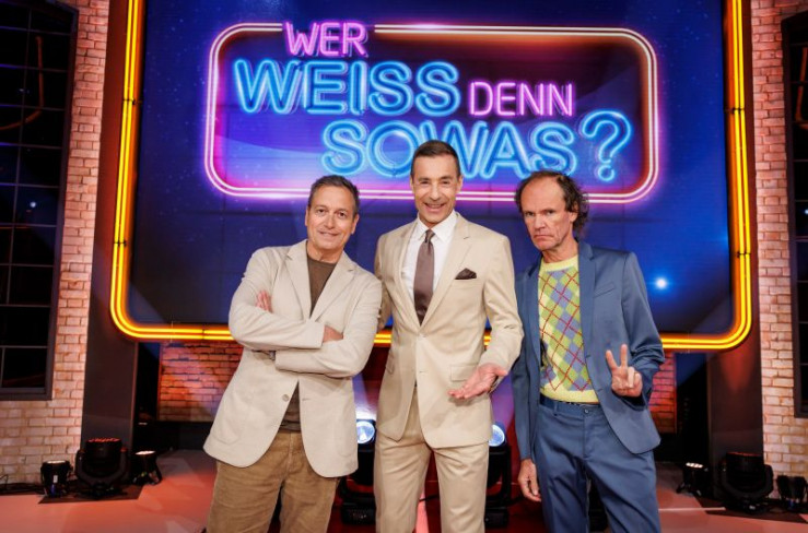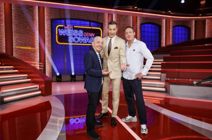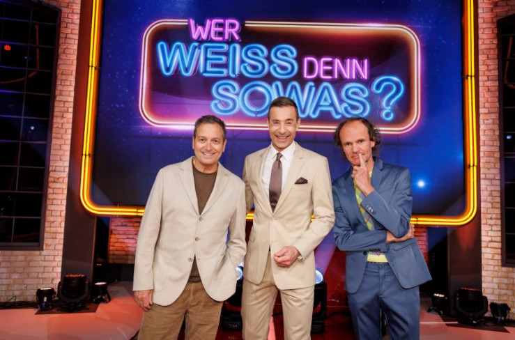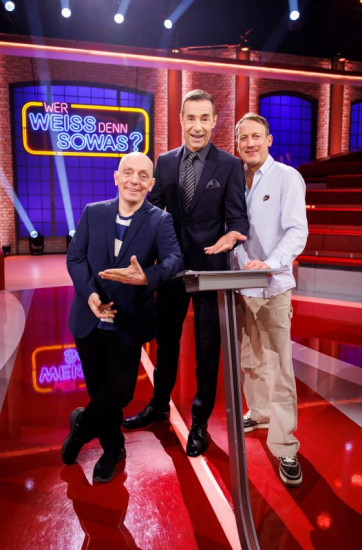Moderator Kai Pflaume (M.) und seine Rateteam-Kapitäne Bernhard Hoëcker (l.) und Wotan Wilke Möhring (r.)