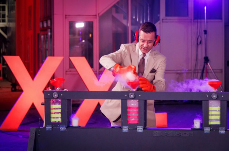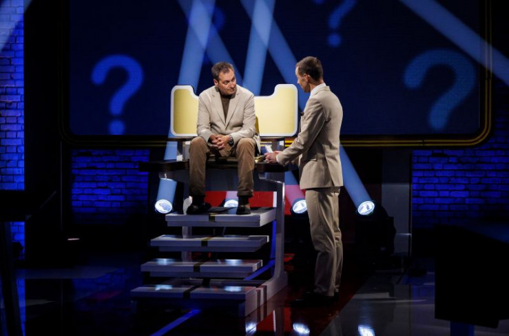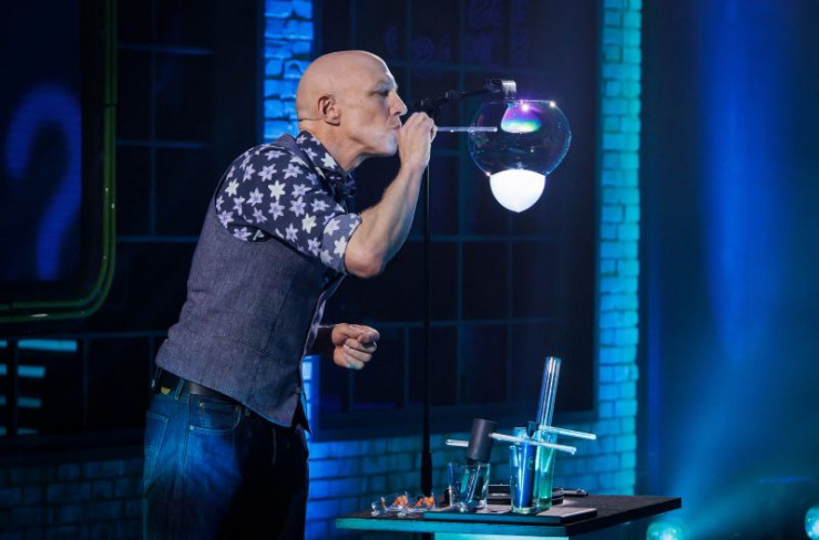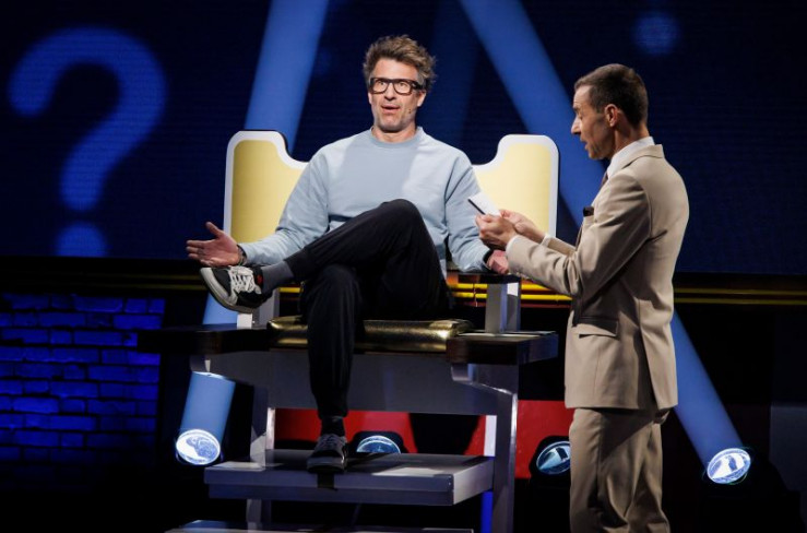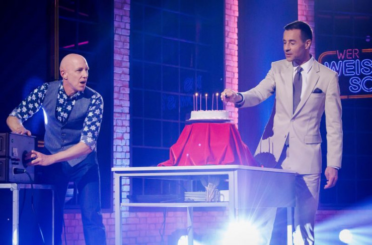 Marcus Weber (l.) bei einem Experiment mit Moderator Kai Pflaume (r.).