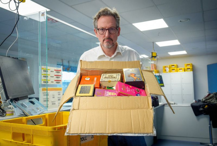 Dr Eckart von Hirschhausen im internationalen Postzentrum in Frankfurt. Dort werden täglich zwischen drei bis fünf Millionen Sendungen bearbeitet. Nur ein Bruchteil wird vom Zoll tatsächlich kontrolliert.