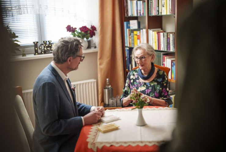 Dr. Eckart von Hirschhausen (l) besucht die 80-jährige Viktoria in ihrer Berliner Wohnung. Auch Viktoria wurde Opfer eines Deepfake-Betrugs.