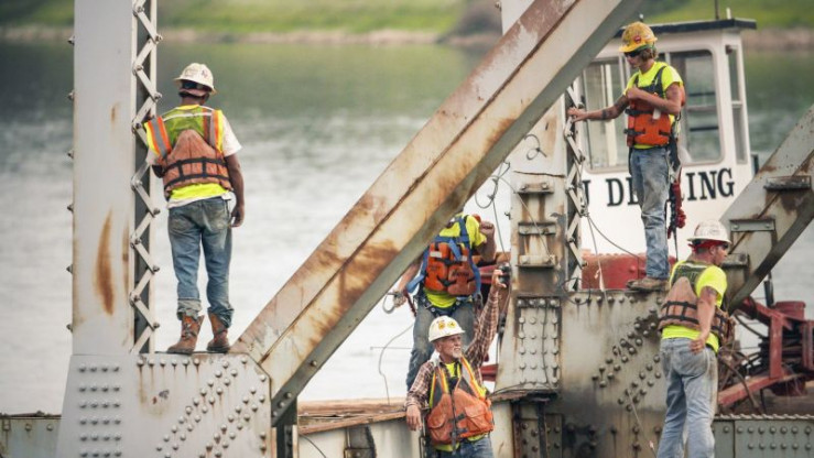 Explosive demolition of the O. K. Allen Bridge.