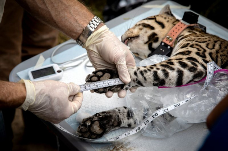 Die Biologen vermessen einen betäubten Ozelot und nehmen Proben für ihre Forschungen. Die gesammelten Daten werden für Studien zur Gefährdung dieser Tierart verwendet.