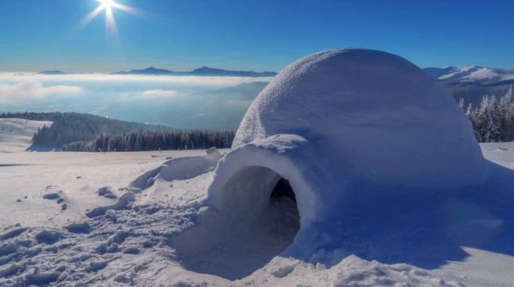 Das Iglu ist eine Erfindung der Eskimos, das ihnen ermöglicht, im harschen Klima der Arktis zu überleben. Die Schlafstelle liegt auf halber Höhe und nutzt so die aufsteigende Wärme eines Feuers.