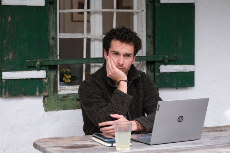 Bastian Pfeiffer (Raban Bieling) ist enttäuscht, als er von Ralf Benovic eine rein geschäftliche Nachricht erhält.