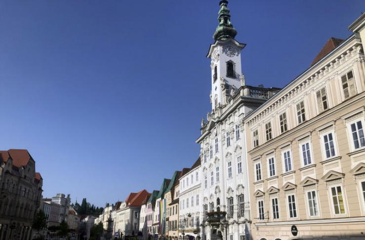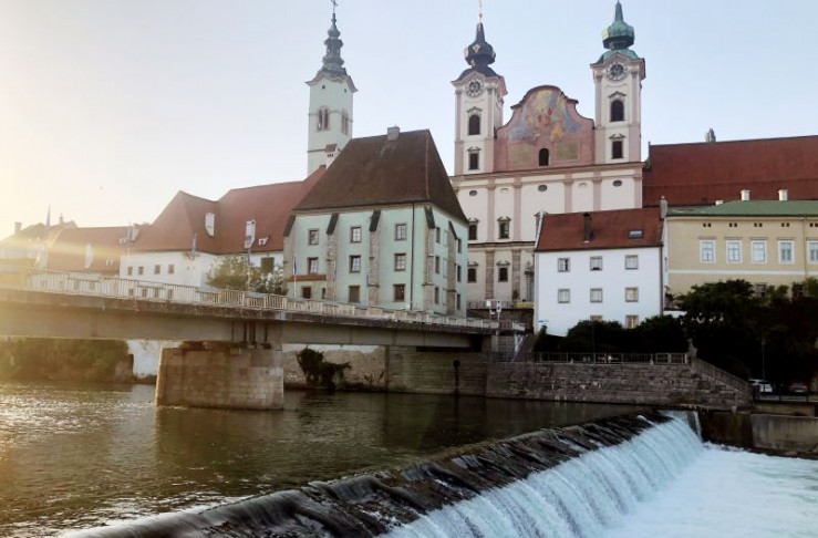 Eine Stadtansicht auf dem Weg mit dem Fahrrad durchs Traunviertel.